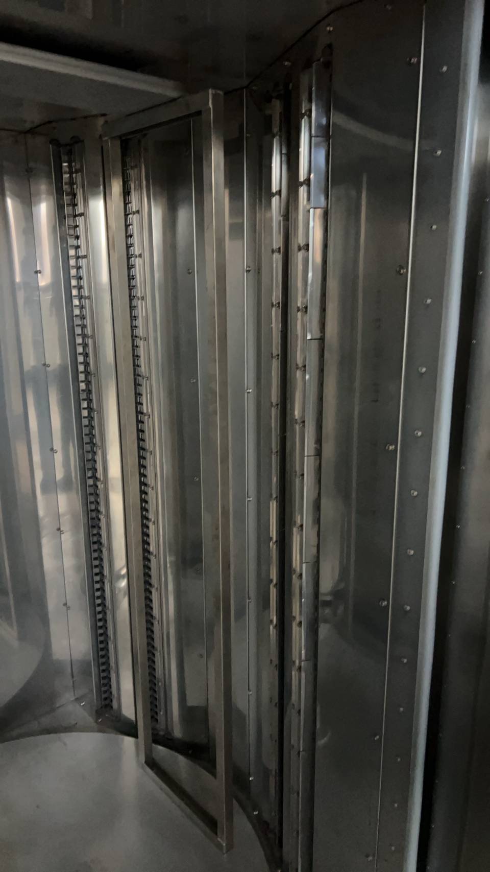 旋轉台車爐之設計適合大量生產需求,使用熱風循環將熱氣度均勻傳遞至產品的每一面,可自由調整低或高風速來控制烘焙者的熟成效果;可烘烤:麵包、蛋糕、瓦斯、柴油三種中任一種,同時備有蒸汽功能可設定烘烤時間與提醒,進具良好的機體密封效果;依需求可搭配加裝蒸氣,適用烘焙可頌、法國麵包等特別需要使用蒸氣功能的產品。